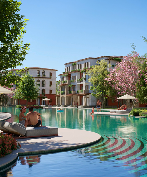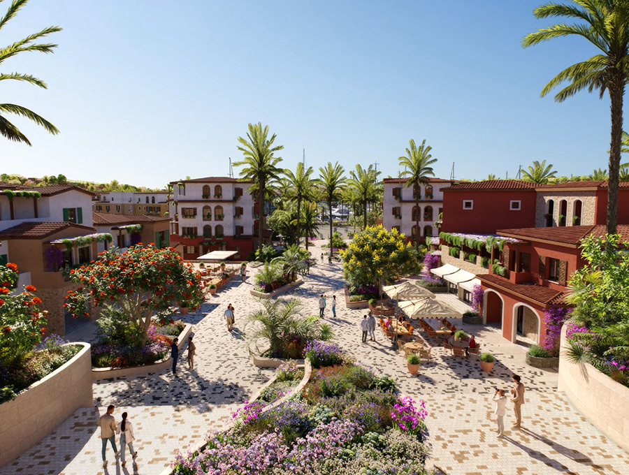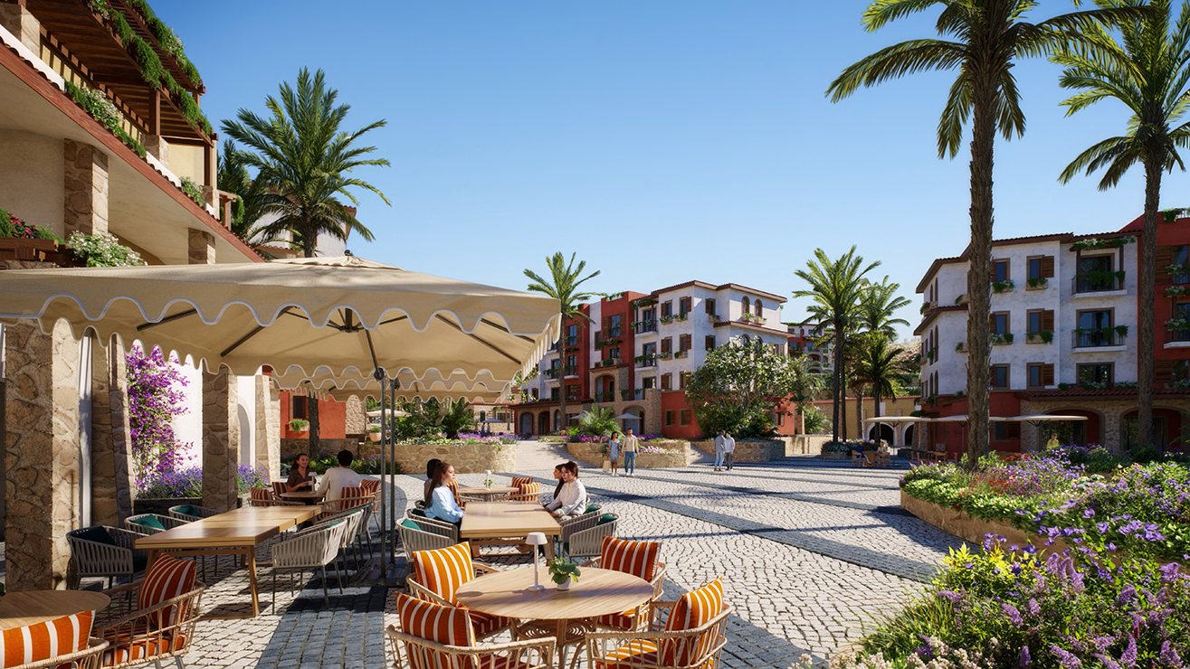 Picture winding streets adorned with Mediterranean-inspired architecture, all set amidst lush greenery and the stunning landscape of Sinai.